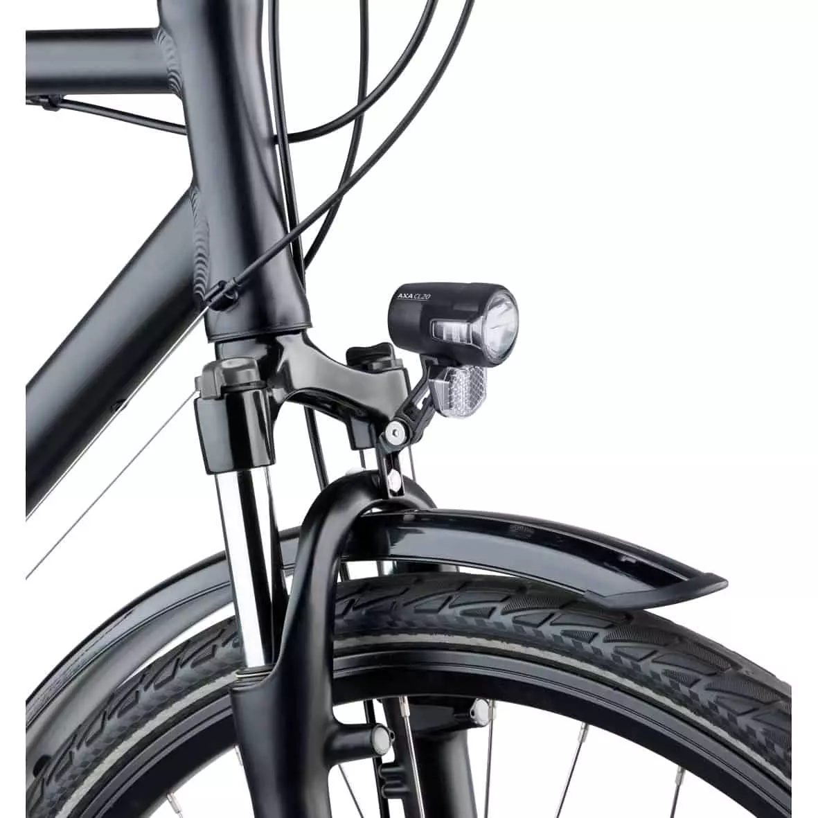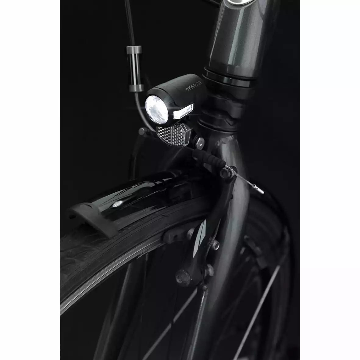 Das Gehäuse des Frontscheinwerfers von AXA ist recht kompakt und hat eine sportliche Formgebung. Die 20 Lux