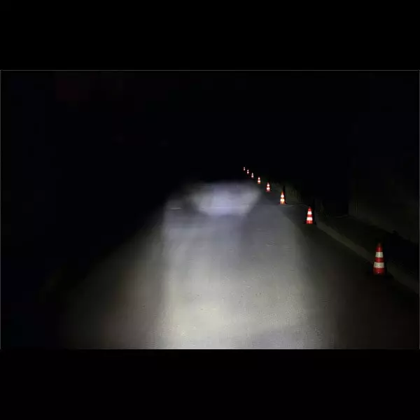 Nahfeldausleuchtung: Durch IQ-Tec und die besonderen Hochtechnologiereflektoren wird eine bislang unerreichte Lichtverteilung ermöglicht. Justiert man das Fahrrad-Frontlicht so, dass das hellste Areal sich 10 Meter vor dem Vorderrad befindet, dann beginnt die Hell-Dunkel-Grenze bei 18 Metern. Neu ist nun, dass das Lichtfeld bereits 1 Meter vor dem Vorderrad anfängt. Dieses Lichtfeld, das sich so nah vor dem Fahrer erstreckt, sorgt dafür, dass man sich beim Fahren in der Dunkelheit sicher fühlt. Es geht weich in das zentrale Lichtfeld über. Dadurch entsteht nicht mehr der Eindruck, als würde man in eine schwarzes Loch fahren, das sich vor dem Fahrrad erstreckt. Stattdessen kann man wie am hellichten Tag spontan auf Unebenheiten oder Hindernisse reagieren. Infolgedessen fühlt man sich sicherer – und ist es auch!