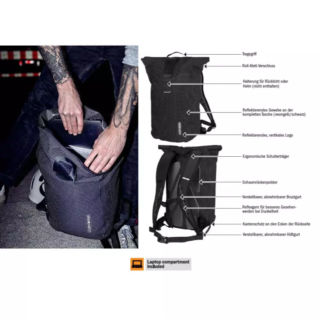 - Reflektierendes, vertikales ORTLIEB-Logo