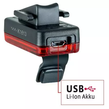 Das Akku-Rücklicht verfügt als besonderes Feature über eine Bremslichtfunktion. Während am Tag beide LEDs als