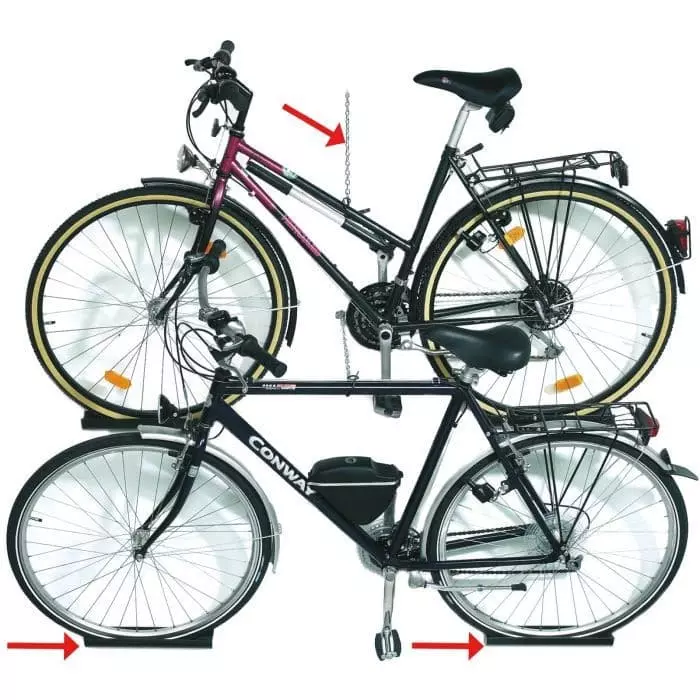 übereinander bei einer Raumhöhe von 2,10 m (eine Wandhalterung pro Rad